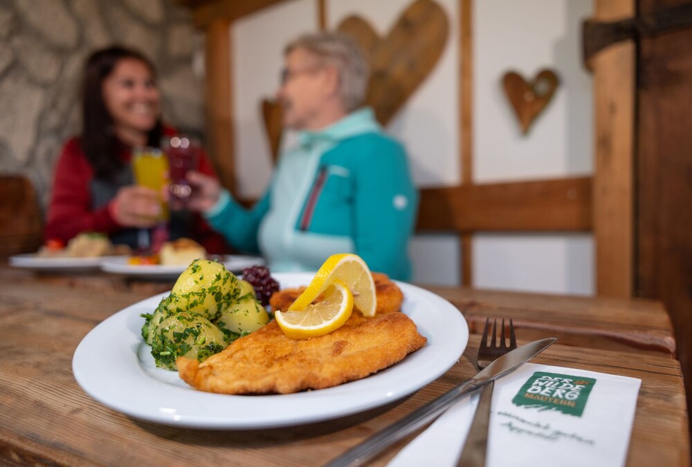 Für Gruppen mit mindestens 20 Teilnehmern bieten wir im Rahmen des "Wilden Berg Pakets" verschiedene Wahl-Menüs mit einer Sammelbestellung 48 Stunden vor eurem Ausflug an. Die Speisen werden direkt an den Tisch serviert.