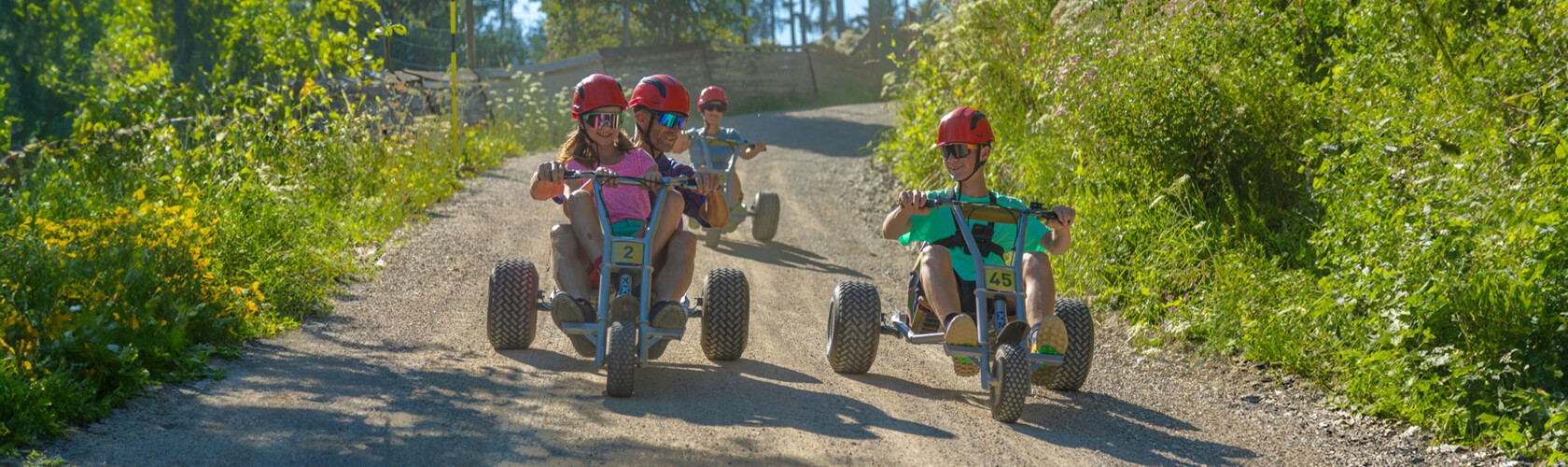 Auch auf drei Rädern kannst du so richtig Spaß haben: Unsere Mountain-Karts sind speziell konstruierte GoKarts, mit denen du entweder gemütlich oder auch ein wenig rasanter über die Forststraße zurück ins Tal kommst.