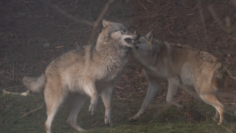 | Fortpflanzung | Nur die ranghöchsten Tiere eines Rudels paaren sich. Die Paarung findet im Frühjahr statt. Nach einer Tragzeit von 60 bis 65 Tagen bringt die Wölfin 4 bis 6 blinde Junge zur Welt, um die sich das ganze Rudel kümmert. |